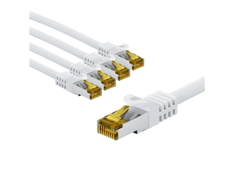Samlet, dobbeltskærmet LAN-kabel (CAT 7 med 600 MHz) med RJ45-tilslutninger (CAT 6A med 500 MHz) til tilslutning af netværkskomponenter