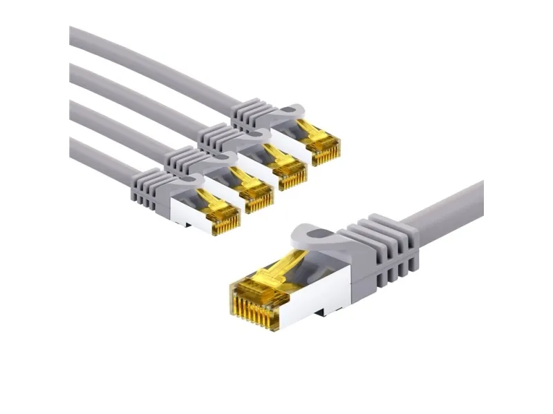 Samlet, dobbeltskærmet LAN-kabel (CAT 7 med 600 MHz) med RJ45-tilslutninger (CAT 6A med 500 MHz) til tilslutning af netværkskomponenter