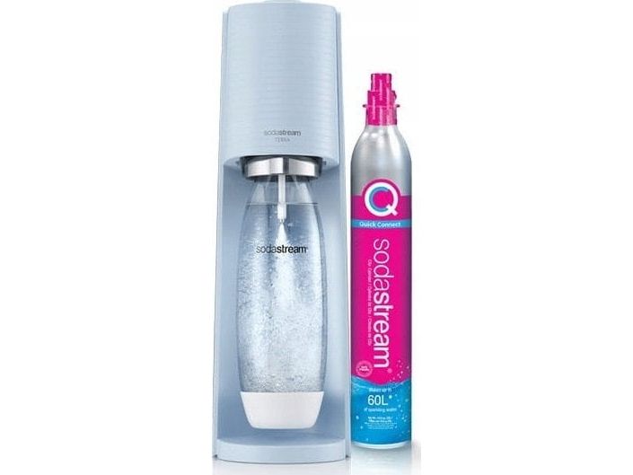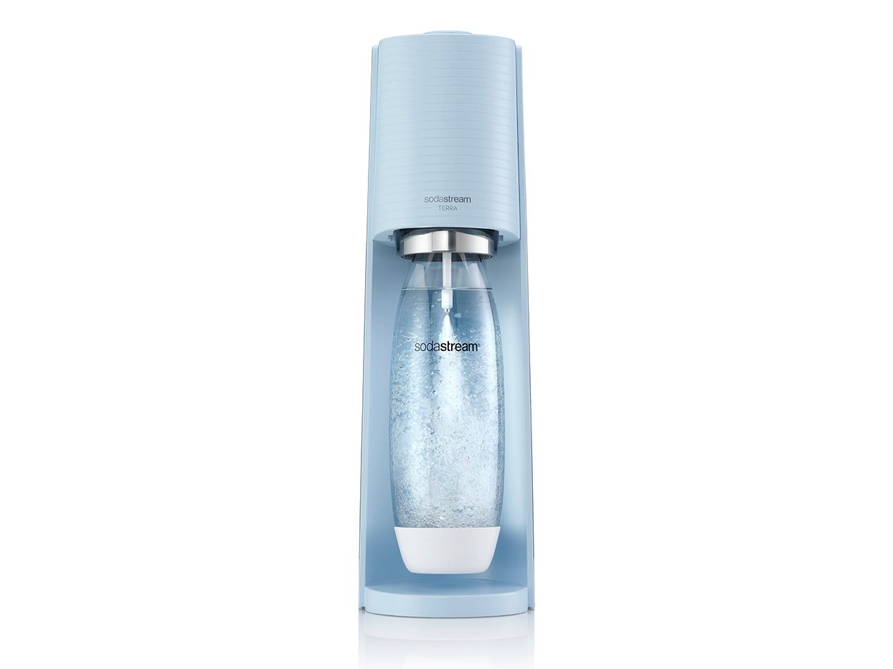 Introducing the SodaStream Terra™, SodaStream's best-selling Sparkling Water Maker. Turn plain water into fresh sparkling water in seconds. Designed for the modern kitchen, it features the new Quick Connect technology for fast and easy CO2 cylinder insertion.SodaStream Terra. Product colour: Blue. Width: 130 mm, Depth: 200 mm, Height: 430 mm. Carbonator charger capacity: 60 L