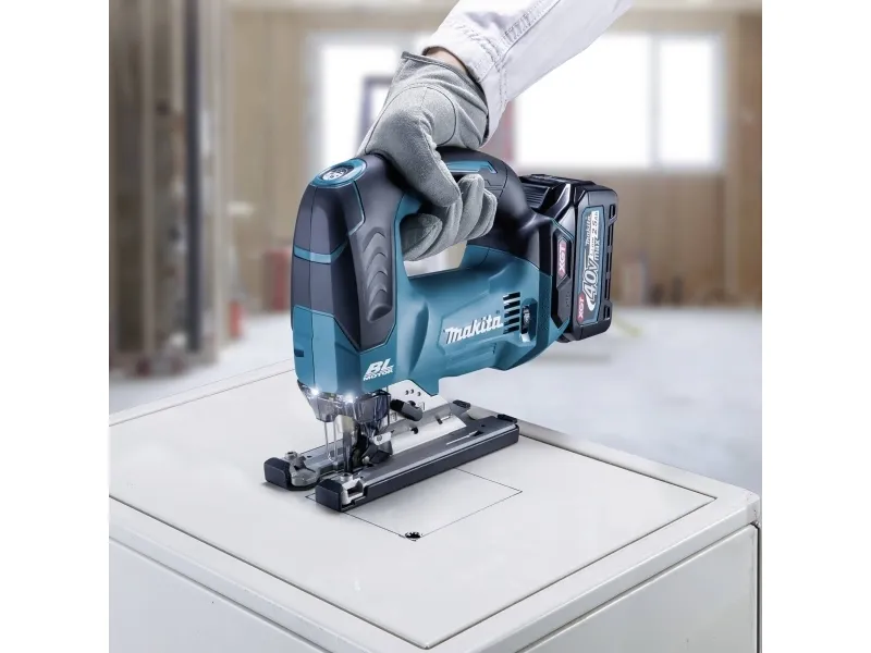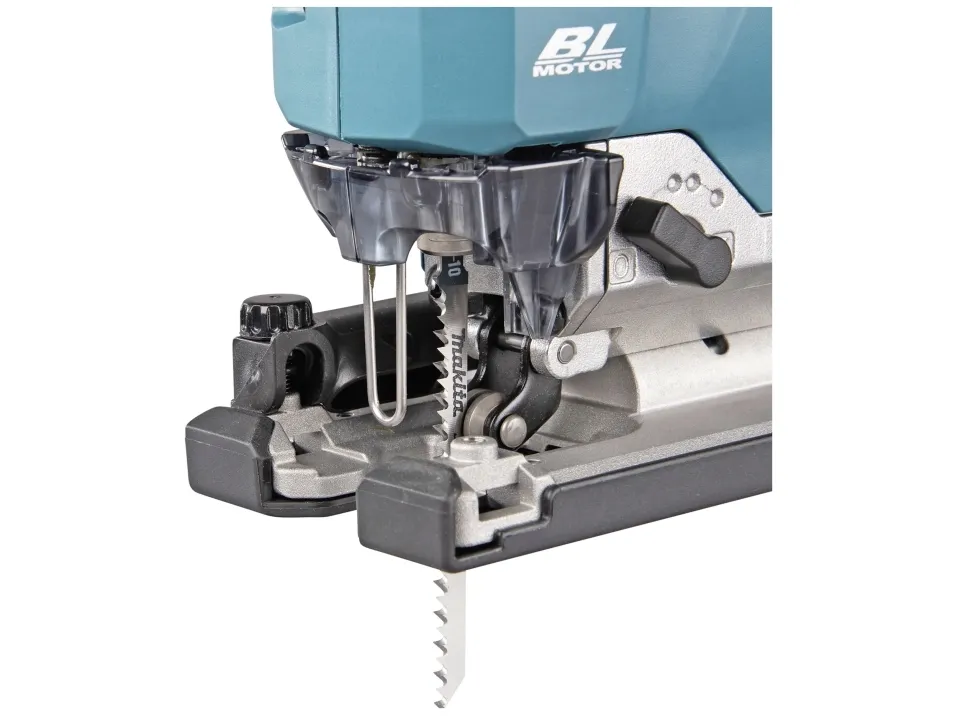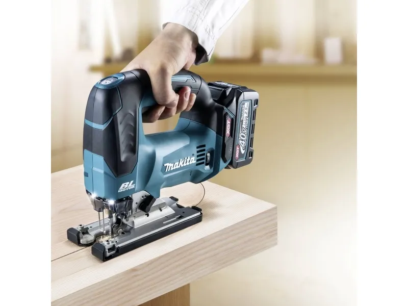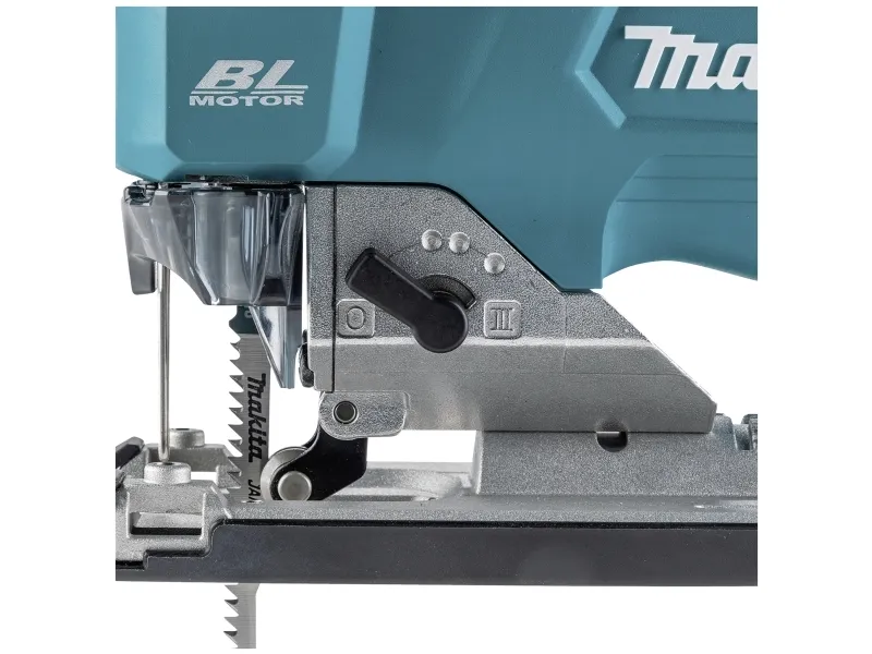 Makita batteri-pendulstiksav JV002GZ Den variable hastighedsindstilling muliggør en lang række anvendelser En bredere grundplade giver større stabilitet ved savning Reduceret lysstyrke for mindre refleksion ved savning af for eksempel Metalplader XPT - Extreme Protection Technology. Optimal beskyttelse mod støv og vandstænk, selv under hårde betingelser. Børsteløs, vedligeholdelsesfri og holdbar motor Højtydende batteri-pendulstiksav med dæmpbar LED-belysning og værktøjsløst skift af savklinger. Højtydende sav med tre-trins pendulhubindstilling plus neutralstilling og værktøjsfri udskiftning af savklinger. Inkl. Dual mode: Dæmpningsfunktion til arbejde over hovedet: Ved at holde på standby-kontakten kan LED-lysstyrken indstilles. En bredere grundplade giver større stabilitet ved savning. Den forbedrede gearkonstruktion muliggør en meget kort konstruktion.