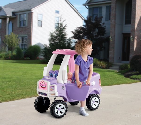 Gåbilen til den kule truck-prinsessen. Prinsesser kan lett være tøffe truckere! Fin lilla/rosa truck-udgave av den elskede Little Tikes gåbilen. Forhjulene dreier hele 360 grader, noe som gjør det lett for barnet å kontrollere med føttene. Håndtaket i taket gir de voksne mulighet for å både holde fast når det er nødvendig men også gi et lite dytt. Inkluderer oppbevaringsrom, tenningsnøkkel, bensindeksel, horn og avtakbar bunnplate. Cozy Truck gåbil kan brukes både ute og inne fra en alder av 18 måneder til 5 år.