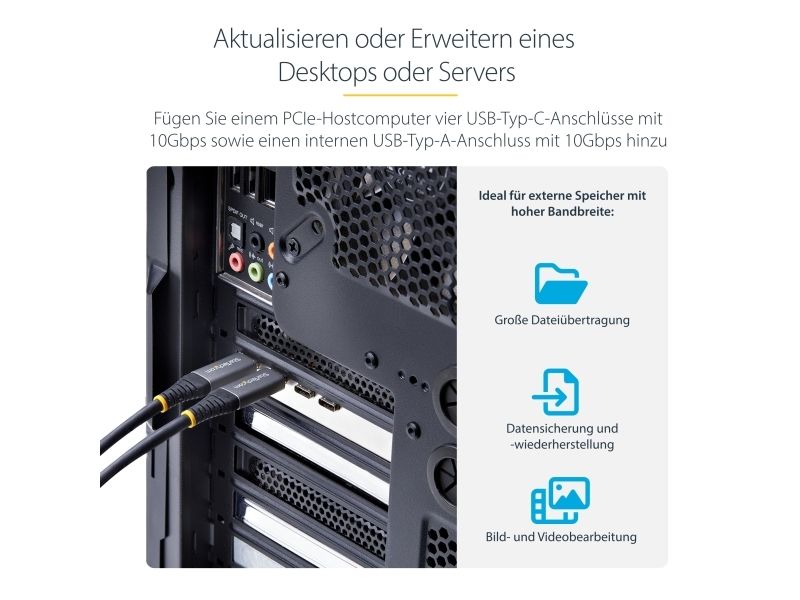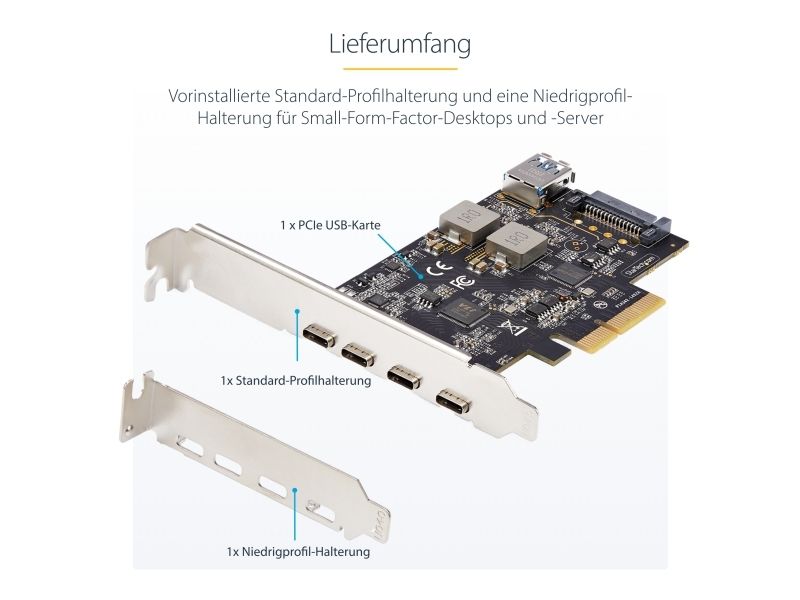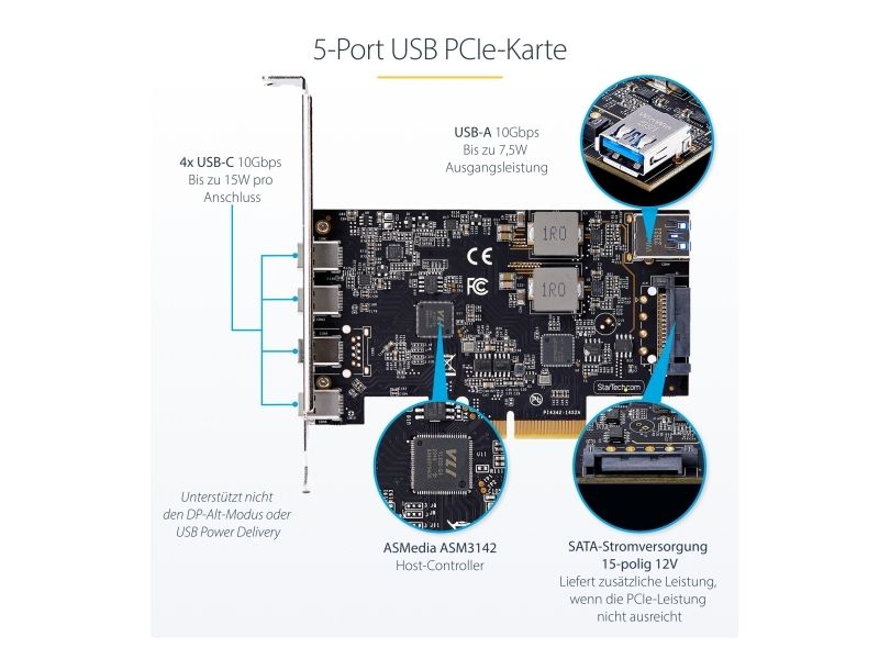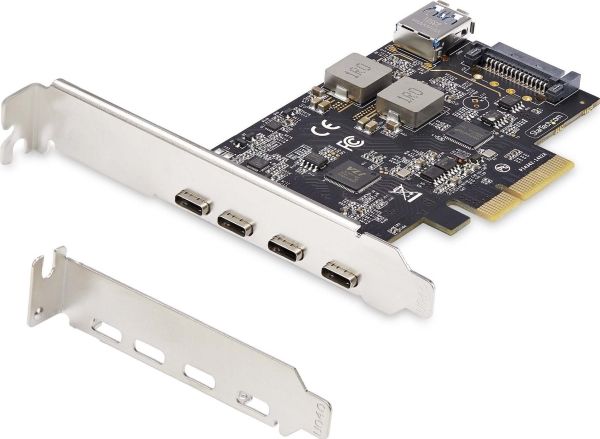 Startech 5-Port USB PCIe Card, USB 3.2 10Gbps, PCI Express Card with 4x USB-C Ports, 1x USB-A Internal Port, USB PCIe Controller Card, Windows/macOS/Linux - USB-adapter - PCIe 3.0 x4 - USB-C 3.2 Gen 1 x 4 + USB 3.2 Gen 1 x 1