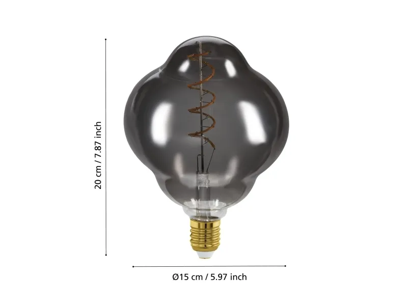 EGLO E27 LED CL150 røykfarget dekorasjonspære med spiral og varmhvitt lys