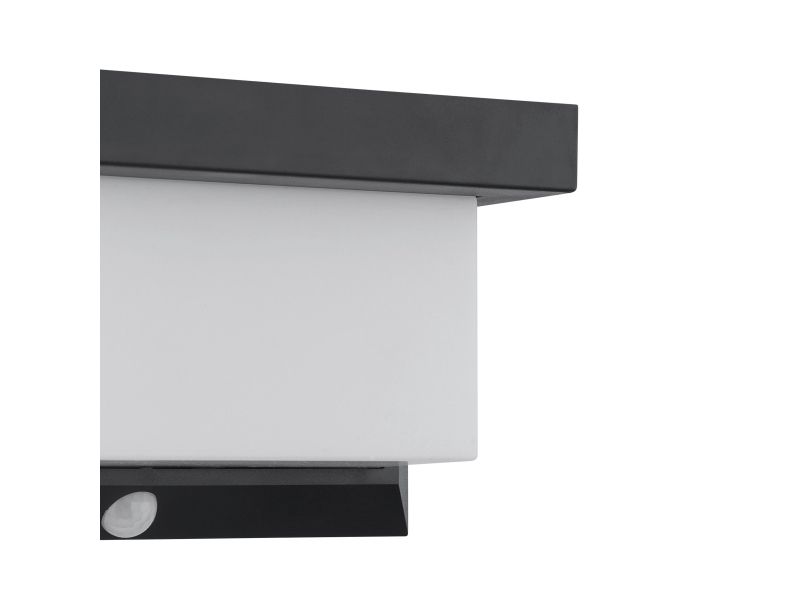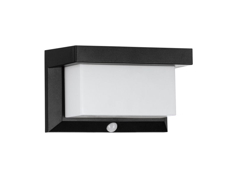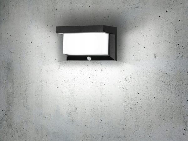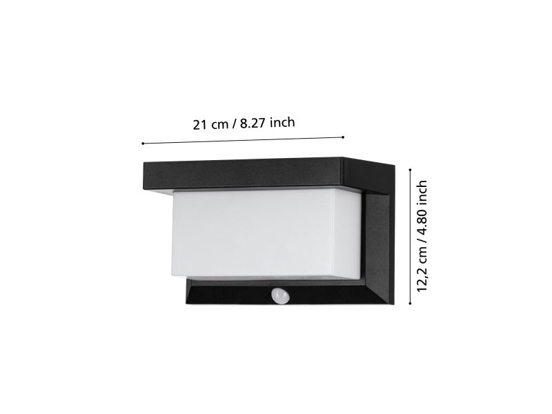 EGLO UTRERA SOLCELLE væglampe i sort med hvid plastskærm. Dæmpbar og med bevægelsessensor. Højde 12 cm, længde 20 cm, bredde 9 cm. LED, 32 x 0,12 watt, 800 lumen. Kold hvidt lys. Leveres inkl. 2 x Li-ion, 2000mAh batterier.