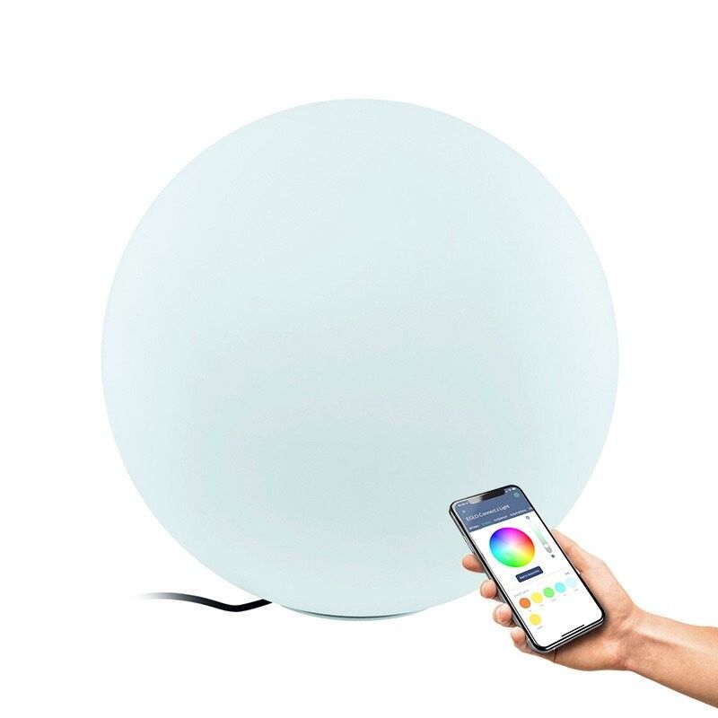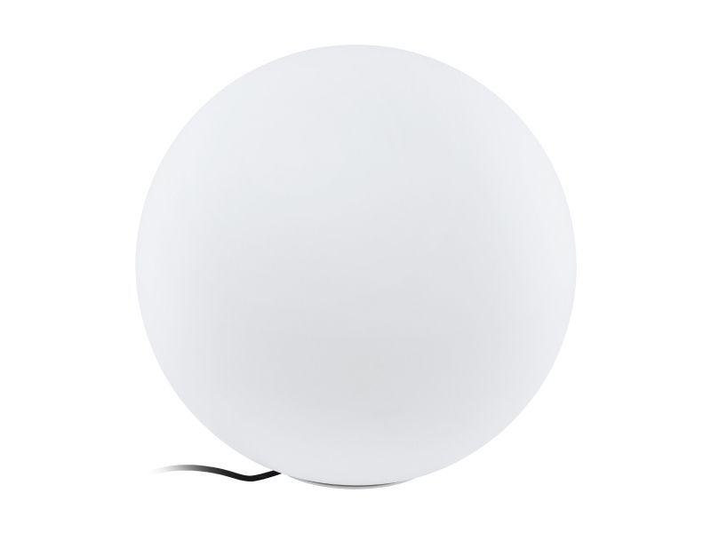 EGLO CONNECT-Z MONTEROLO-Z udendørs kugle i hvid. Med stik og 2 meter ledning. Højde 50 cm, diameter 50 cm. E27, 9 watt, 806 lumen, 2700-6500 kelvin, RGB + Tunable white. Lampen kan dæmpes og styres med fjernbetjening (medfølger ikke), via AwoX Home Control app (gratis), eller ved stemmestyring. Zigbee er kompatibel med Amazon Alexa og Google Assistent. IP65. Dette produkt indeholder en lyskilde med energieffektivitetsklasse: E.