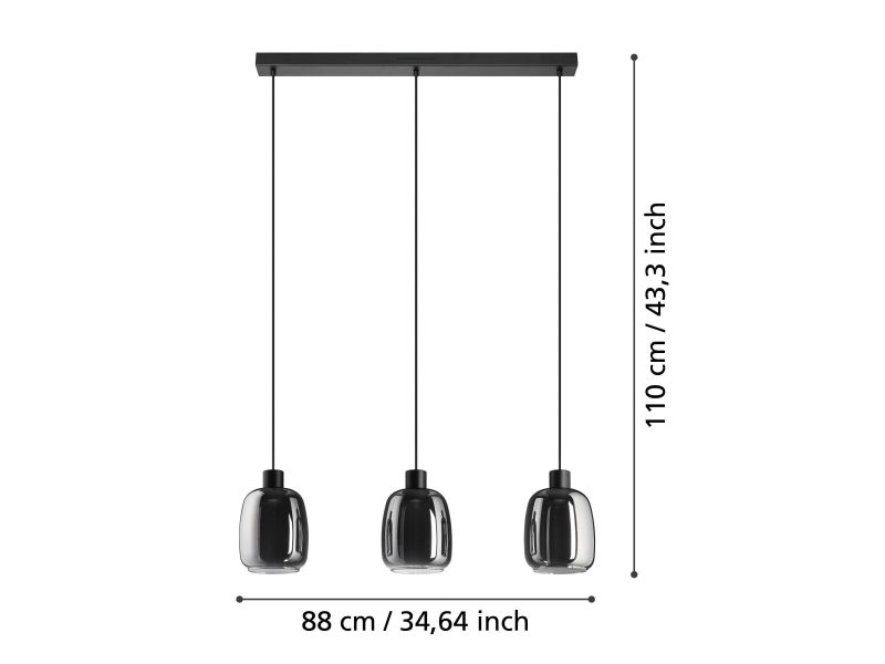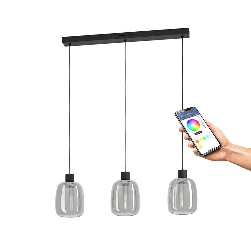 Denne unikke smart connect.z Molochio langbordspendel leveres i et elegant moderne design. Lampen er designet i sort med 3 røgfarvet glas, og er produceret i stål. Den har en justerbar højde på 110 cm, en længde på 88 cm, og en bredde på 12,5 cm. Lampen leveres i et moderne design med 3 energibesparende LED lyskilder, der har et energiforbrug på kun 3,7 watt hver. Lampen har en lysstyrke på 1500 lumen, der kan justeres i 16 millioner forskellige RGB farver og hvide nuancer fra 2700-6500 kelvin for at opnå det perfekte lys til dit behov. Med beskyttelsesklasse IP20 er lampen både elegant og sikkert designet til ethvert hjem. Lampen indeholder lyskilder med energieffektivitetsklasse: E. I Molochio-z serien findes også en pendel.
