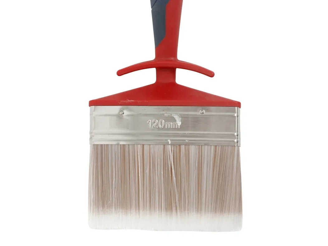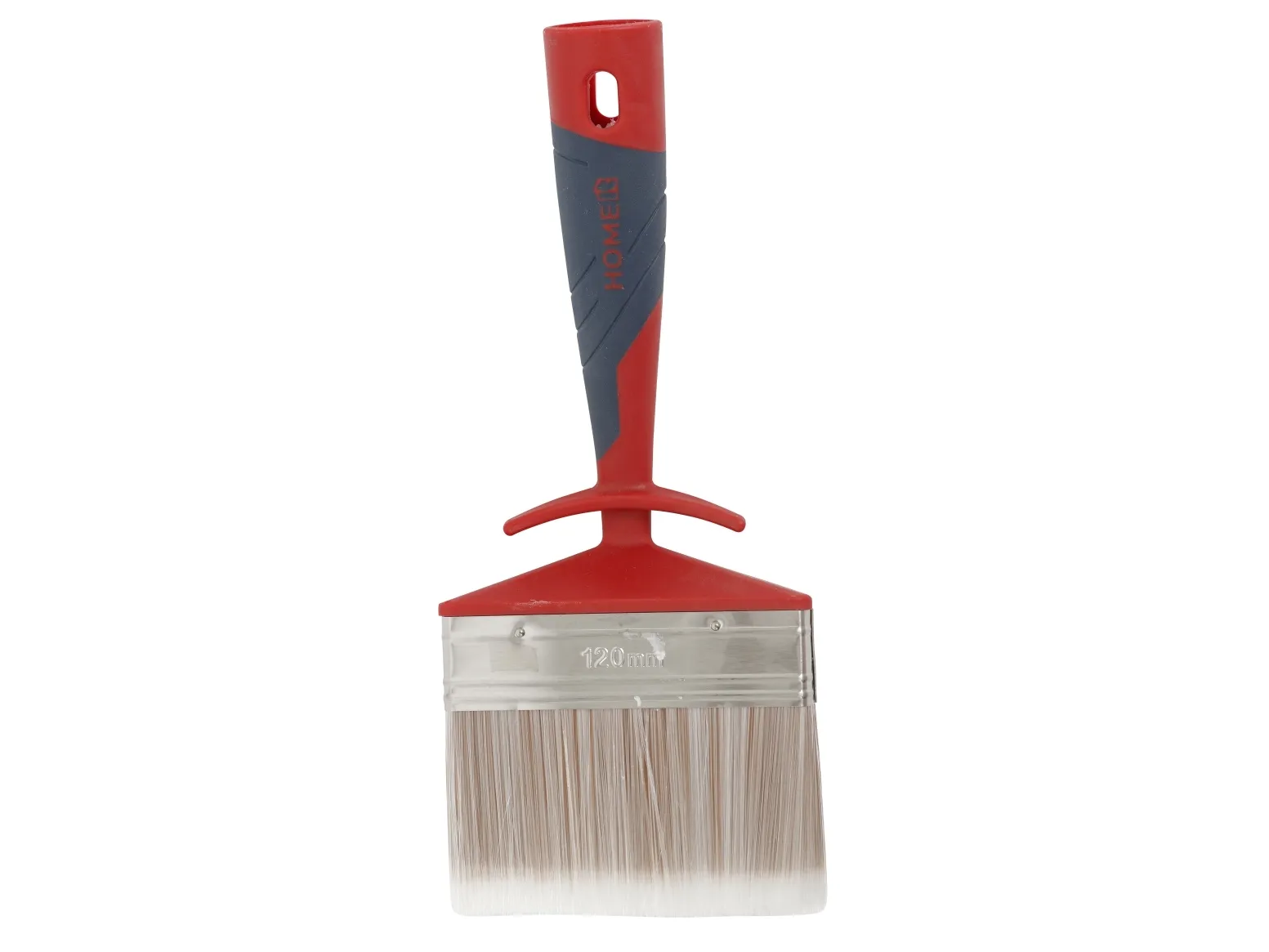 Størrelse: 120 x 33 mm Længde: 27,5 cm Materiale: PET/PBT og fibre = massiv/konisk hår 30% og hule hår 70% Greb: 2-komponet vinkelgreb, som sikre et godt greb Egenskab: L-krog til at hænge penslen på malerspand Egenskab: Kan påmonteres forlængerskaft Farve: rød / blå