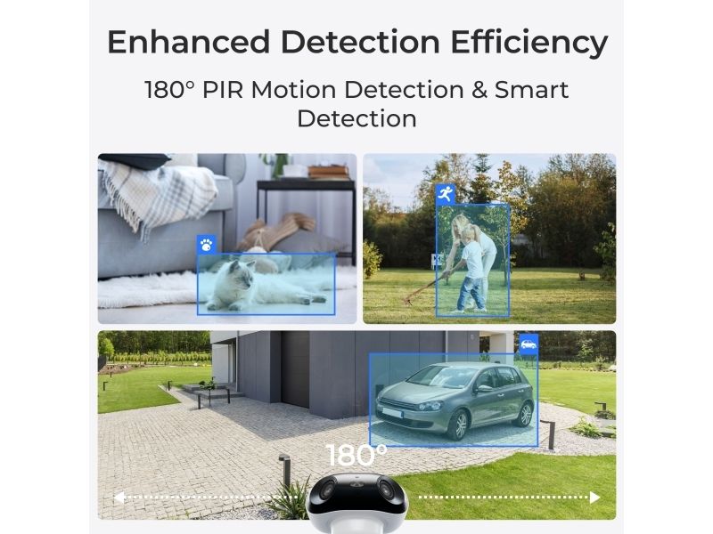 Reolink Argus 4 Pro nettverksovervåkningskamera tilbyr avanserte sikkerhetsfunksjoner som er utviklet for å forbedre sikkerheten i hjemmet og på arbeidsplassen. Kameraet er utstyrt med et kraftig 5000 mAh batteri og et solcellepanel for effektiv energistyring, og fungerer pålitelig under ulike miljøforhold, med temperaturer fra -10 °C til 55 °C. 180° panoramavisning og 5120 x 1440 digital videoopptaksoppløsning sikrer omfattende dekning av ethvert område, mens funksjoner som fargenattvisjon og kjøretøydeteksjon gir klarhet og respons når det er viktigst. Dette kameraet støtter et bredt spekter av nettverksprotokoller, inkludert Wi-Fi og Bluetooth 5.0, noe som muliggjør jevn tilkobling og integrering med smarte hjemmesystemer som Google Assistant. Med muligheter for skyopptak, bevegelsesdeteksjon og toveis lydfunksjon forbedres overvåkingsopplevelsen din, noe som sikrer sanntids kommunikasjon og overvåking av omgivelsene dine. Reolink Argus 4 Pro er designet for de som søker en pålitelig og funksjonsrik overvåkingsløsning.