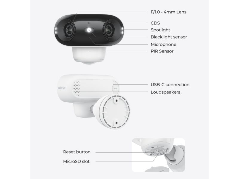Reolink Argus Series 4 Pro - Nettverksovervåkingskamera - utendørs - værbestandig - farge (Dag og natt) - 8 MP - 5120 x 1440 - 4K - fastfokal - lyd - trådløs - Wi-Fi - 802.11ax, Bluetooth 5.0 - H.264, H.265