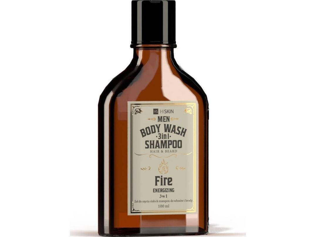 HISKIN_Men Whisky body wash gel og sjampo for hår og skjegg 3in1 Fire 100ml