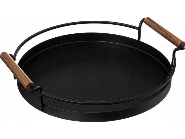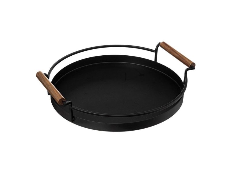 5five Svart rundt brett, håndtak av akasietre, Ø 36 cm