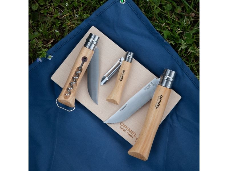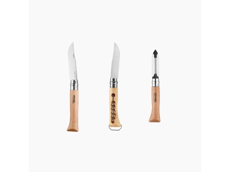 Opinel Cooking Kit, Kniv sett, Rustfritt stål, Tre, 2 verktøy, Flaskeåpner, Korkskrue, Skreller, Rustfritt stål