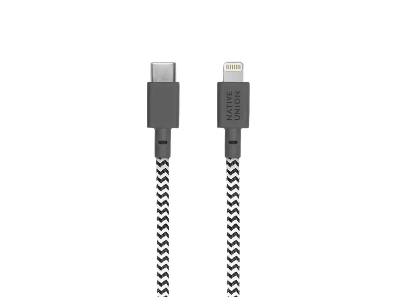 Native Union NCABLE-KV-CL-ZEB, 3 m, Lightning, USB A, Hankjønn, Hankjønn, Sort, Hvit