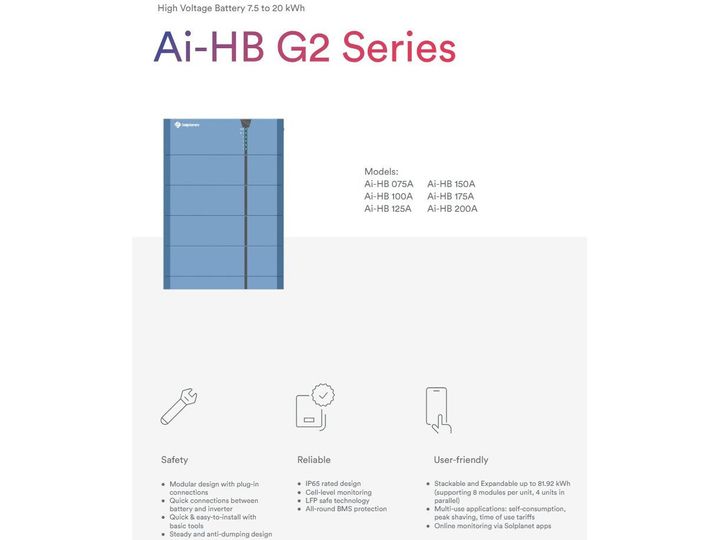 Solplanet HV Batteri Modul G2 2.56kWh for G2 BMS til 3 faset Hybrid T1 og T2/T3 Inverter, mulighed for IntelliCharge AI-integration