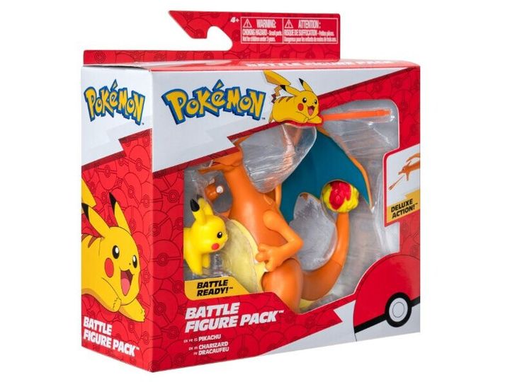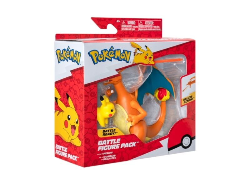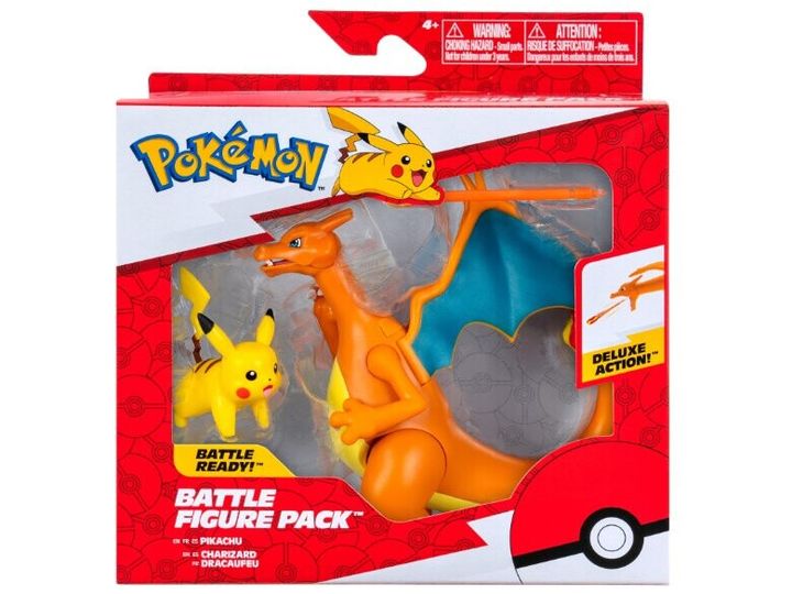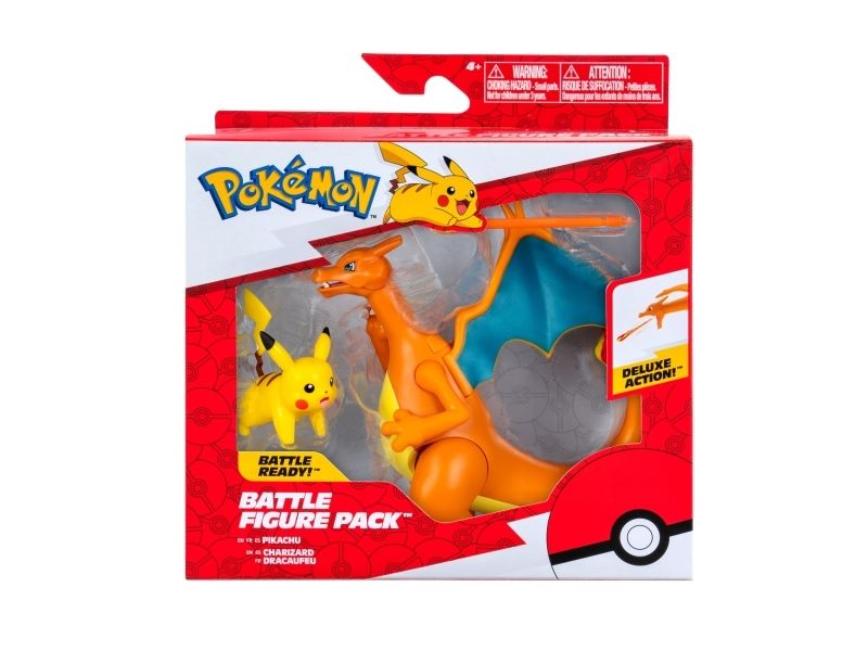 Unleash the powers of Fire and Electric with this Pokémon Battle Figure 2 Pack. Train with the Fire-type Charizard before teaming up with the Electric-type Pikachu. Each battle figure is dynamically posed and ready for battle. All 2-inch Pokémon figures fit in Clip 'N' Go Poké Ball and Carry Case Playset. These highly detailed figures look like they jumped right out of the Pokémon Animated Series. Officially licensed by Jazwares. Ages 4+