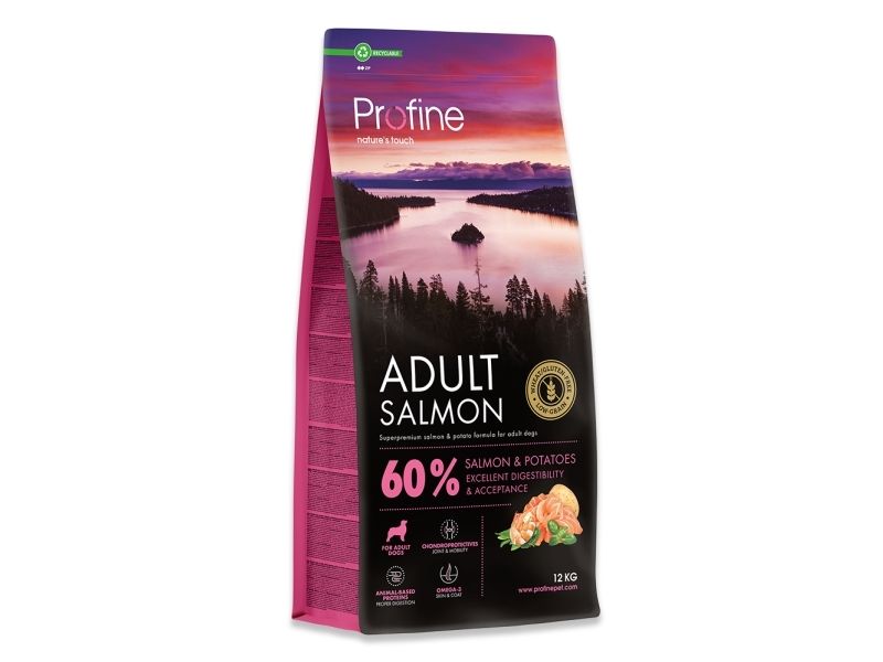 Profine Adult Salmon tørfoder til voksne hunde består af 37% laks, kartofler og majs