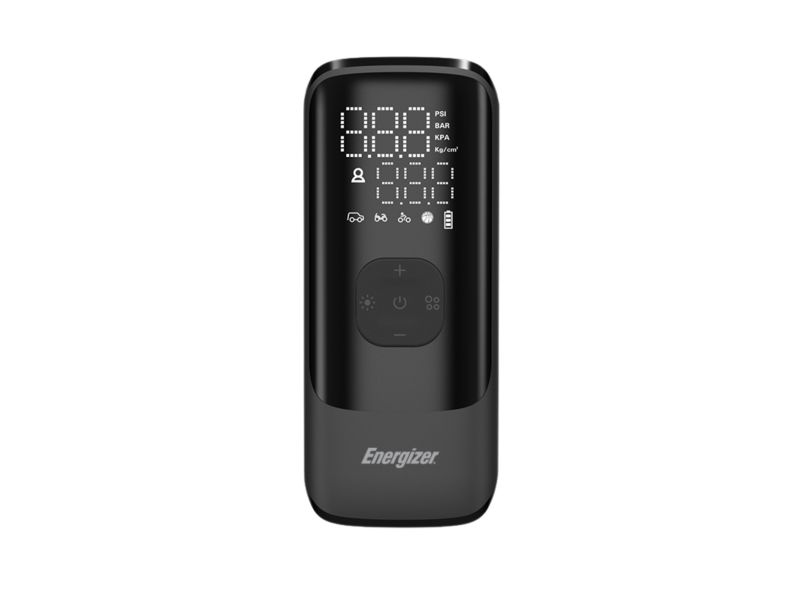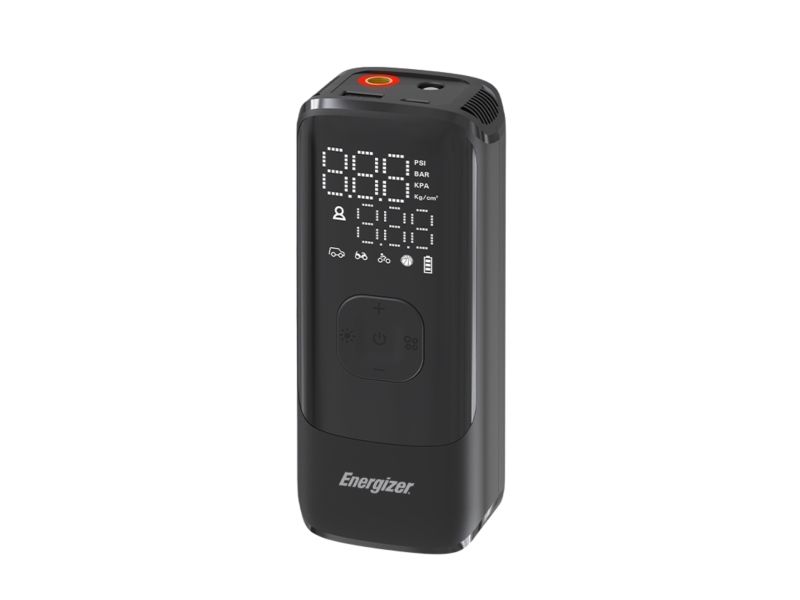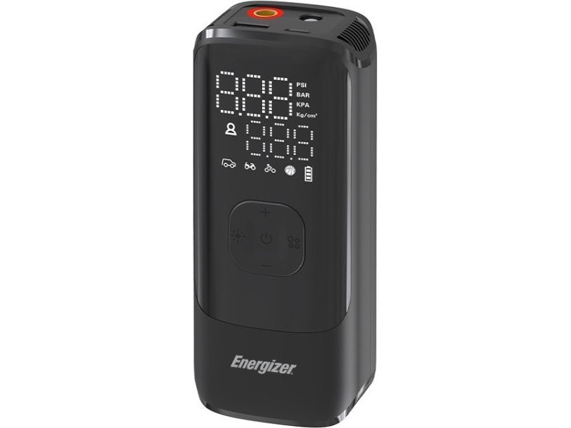 Højtydende dækpumpe med 150 PSI maks. tryk og USB-A-udgang.