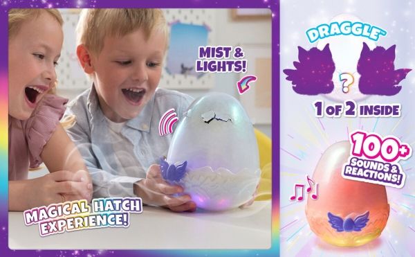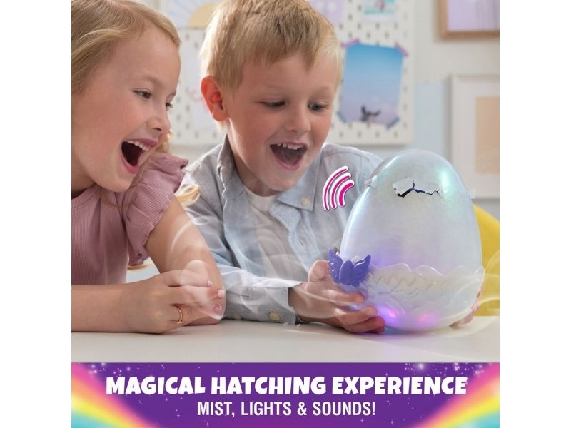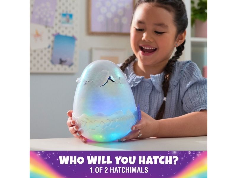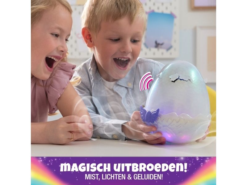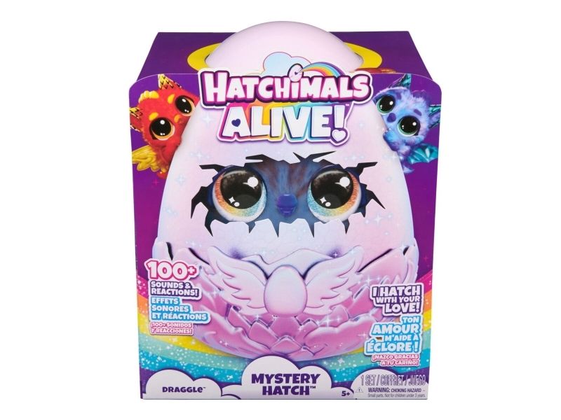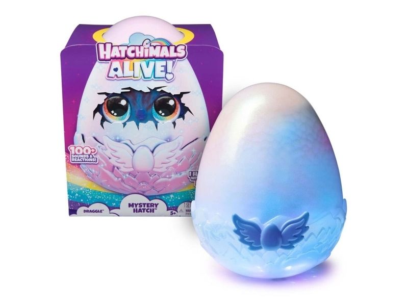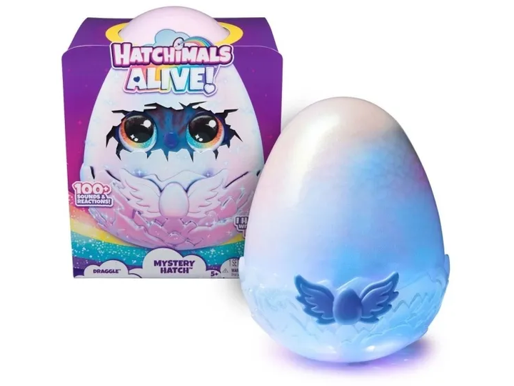 Noe magisk er på vei: Hatchimals Alive Mystery Hatch, og de trenger din kjærlighet for å klekkes. Med en spennende klekkeopplevelse med tåke, lys og over 100 lyder og reaksjoner er disse Hatchimals et must-have. Hvem vil du klekke ut? Det er en overraskelse. Inni hvert Mystery Hatch Hatchimals-egg er det én av to figurer. Klem, trykk, løft og vipp egget for å oppmuntre figuren din til å klekkes - egget vil lyse opp og vippe, og du vil til og med høre Hatchimals reagere fra innsiden. Når egget ditt har fått nok kjærlighet, kan du samle familie og venner og forberede deg på den ultimate klekkeopplevelsen. Magisk tåke vil dukke opp, og egget vil gløde i regnbuefarger, noe som bygger opp spenningen. Etter klekking vil din nye Mystery Hatch-venn inspirere til fantasifull lek. De som elsker overraskelsesleker, elektroniske kjæledyr, actionfigurer, dukker og dukkehus, vil elske Hatchimals Alive Mystery Hatch. En minneverdig bursdagsgave, festgave eller gave til enhver anledning. Inkluderer 4 AA-batterier. Gi liv til ditt eget Hatchimal med Hatchimals Alive Mystery Hatch. Fra 5 år og oppover. Batterier (4xLR6-AA) medfølger.