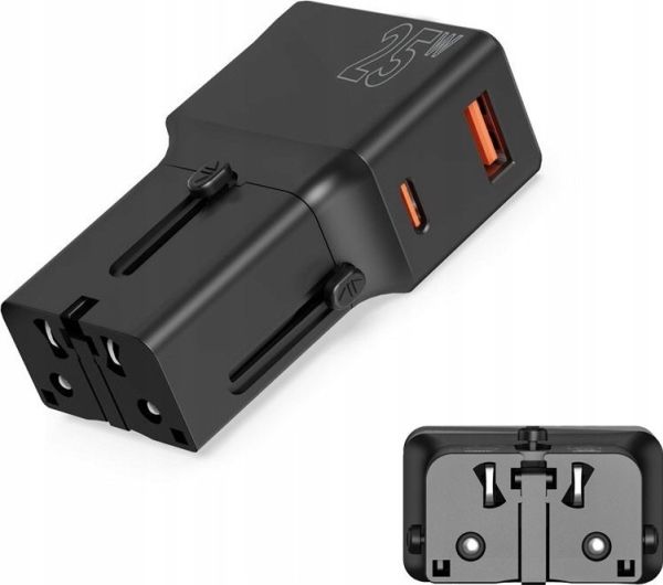Mobile Origin Travel adapter 25W, EU/US/UK/AU, czarny (TAD25-2P-BLK)