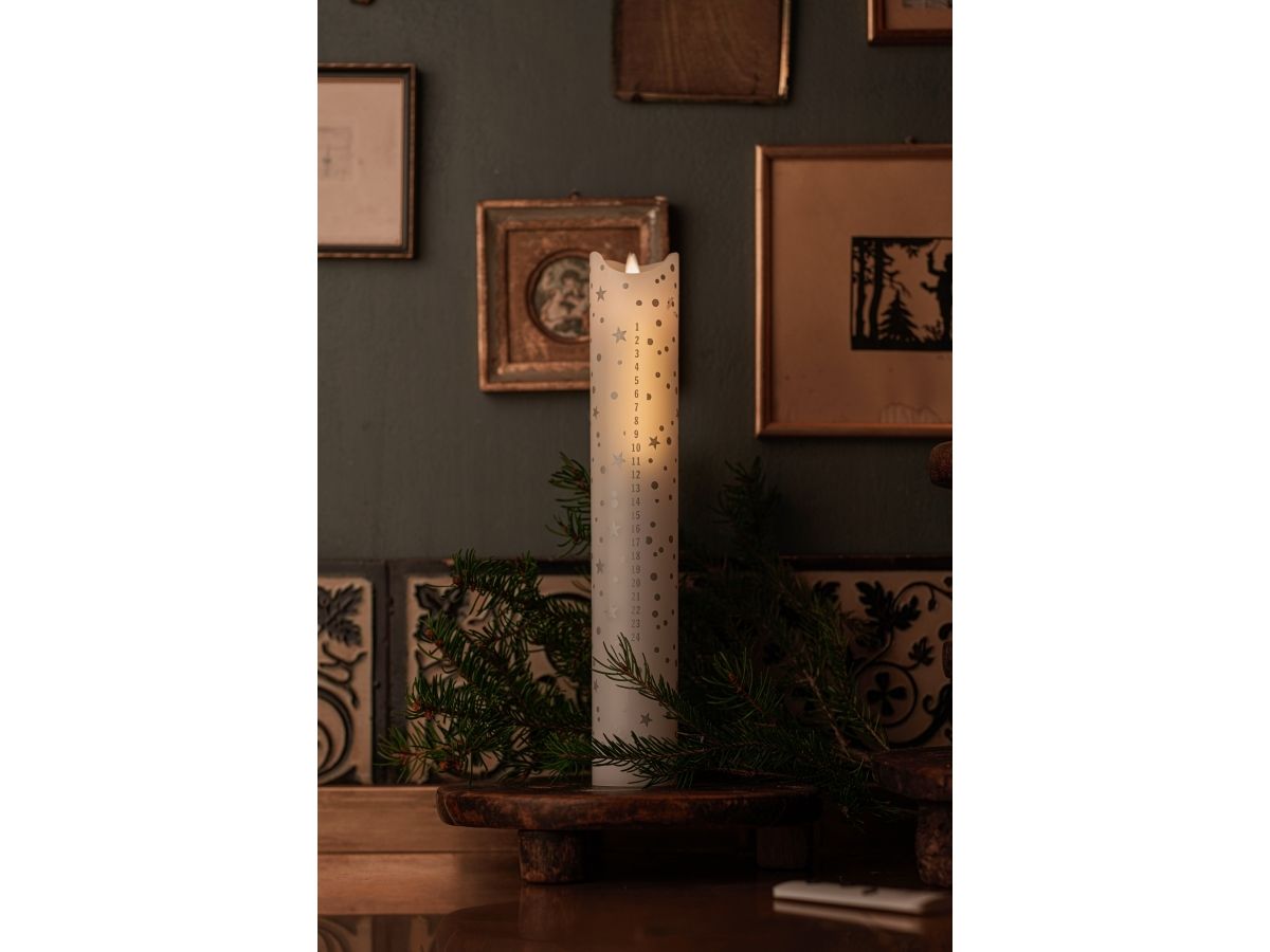 Sirius Home Sara Kalenderlys, Glitterlampe, Hvit, Stearinlys, 1 ampuller, LED, Myk hvit, Varm hvit