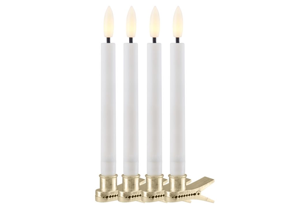 Dens slanke facon og flamme får lyset til at ligne et klassisk juletræslys. Det vil derfor også være nemt at pynte juletræet med de yngste fra familien uden de store problemer. Klemmerne på Sille juletræslys fås i en smuk guldfarve, og juletræslyset kan tages af og på. Lyset og klemmen holdes fast af en lille magnet nede i klemmen. Vores Sille juletræslys kommer i en pakke af 10 lys. Flammen har alle et 3D LED-lys foroven, som er med til at skabe en varm lyskilde.