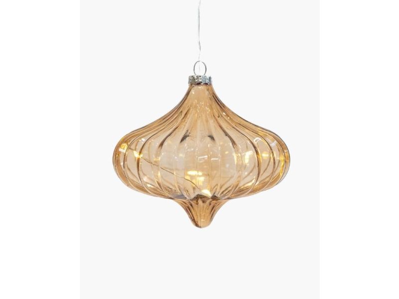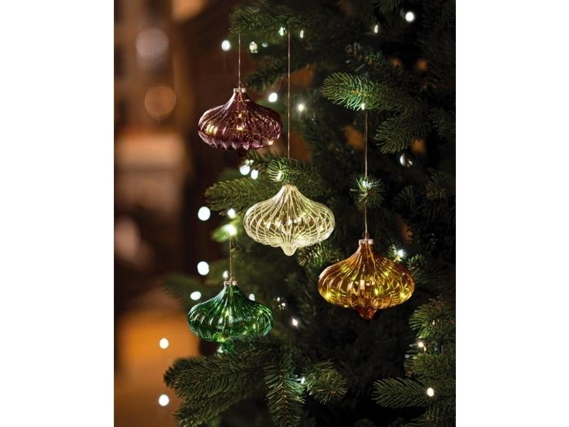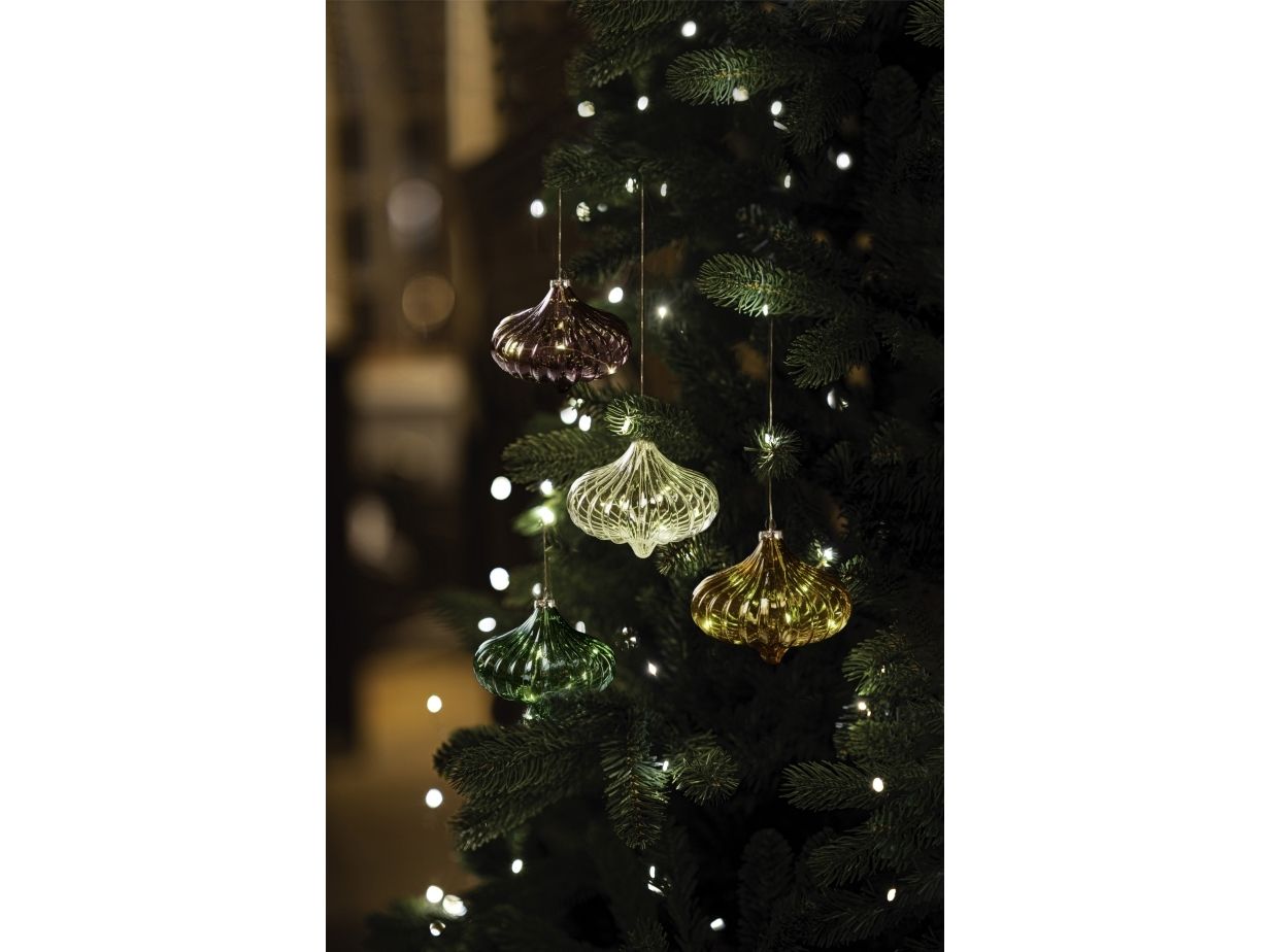 Dina glasdekoration fra danske Sirius er et elegant og smukt ornament af mundblæst glas med varme LED-lys, der funkler fint og skaber ægte julehygge ved de mørke december aftener. Ornamentets udskæringer langs siderne får lyset til at spille elegant gennem glasset både om dagen og om natten.