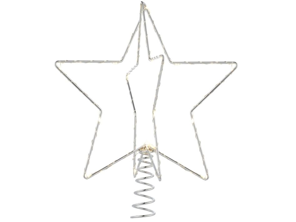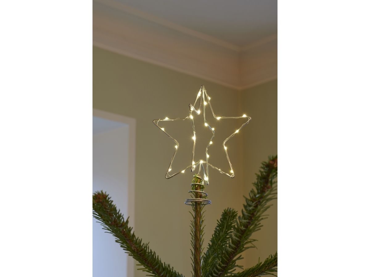 Julestjerne er ikke tung, og derfor kan børnene også løfte den uden problemer. Vores Christina juletræstop fås i sølv, og er designet ud fra en klassisk julestjerne med fem kanter. Den er sat sammen med to forskellige stjerner, hvilket giver den en 3D effekt. Rundt om hele juletræsstjernen er der viklet 30 LED-lys på, og derfor lyser juletræsstjernen flot op i en varm hvid farve. Denne farve er Sirius egen signatur farve, og er en klassisk og eftertragtet farve i norden.