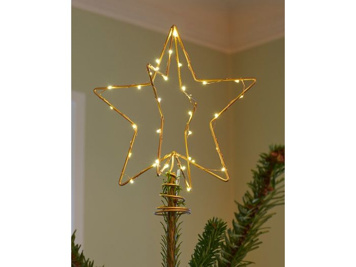 Julestjerne er ikke tung, og derfor kan børnene også løfte den uden problemer. Vores Christina juletræstop fås i guld, og er designet ud fra en klassisk julestjerne med fem kanter. Den er sat sammen med to forskellige stjerner, hvilket giver den en 3D effekt. Rundt om hele juletræsstjernen er der viklet 30 LED-lys på, og derfor lyser juletræsstjernen flot op i en varm hvid farve. Denne farve er Sirius egen signatur farve, og er en klassisk og eftertragtet farve i norden.