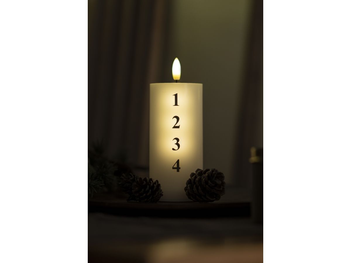 Sille Adventslys har en oplyst midte med tallene 1-4, afhængig af den aktuelle adventssøndag. Med den medfølgende fjernbetjening kan du nemt tænde de relevante adventsdage på knapperne med tallene 1-4 og styre tænding og slukning af lyset, og lade julespændingen stige advent efter advent.