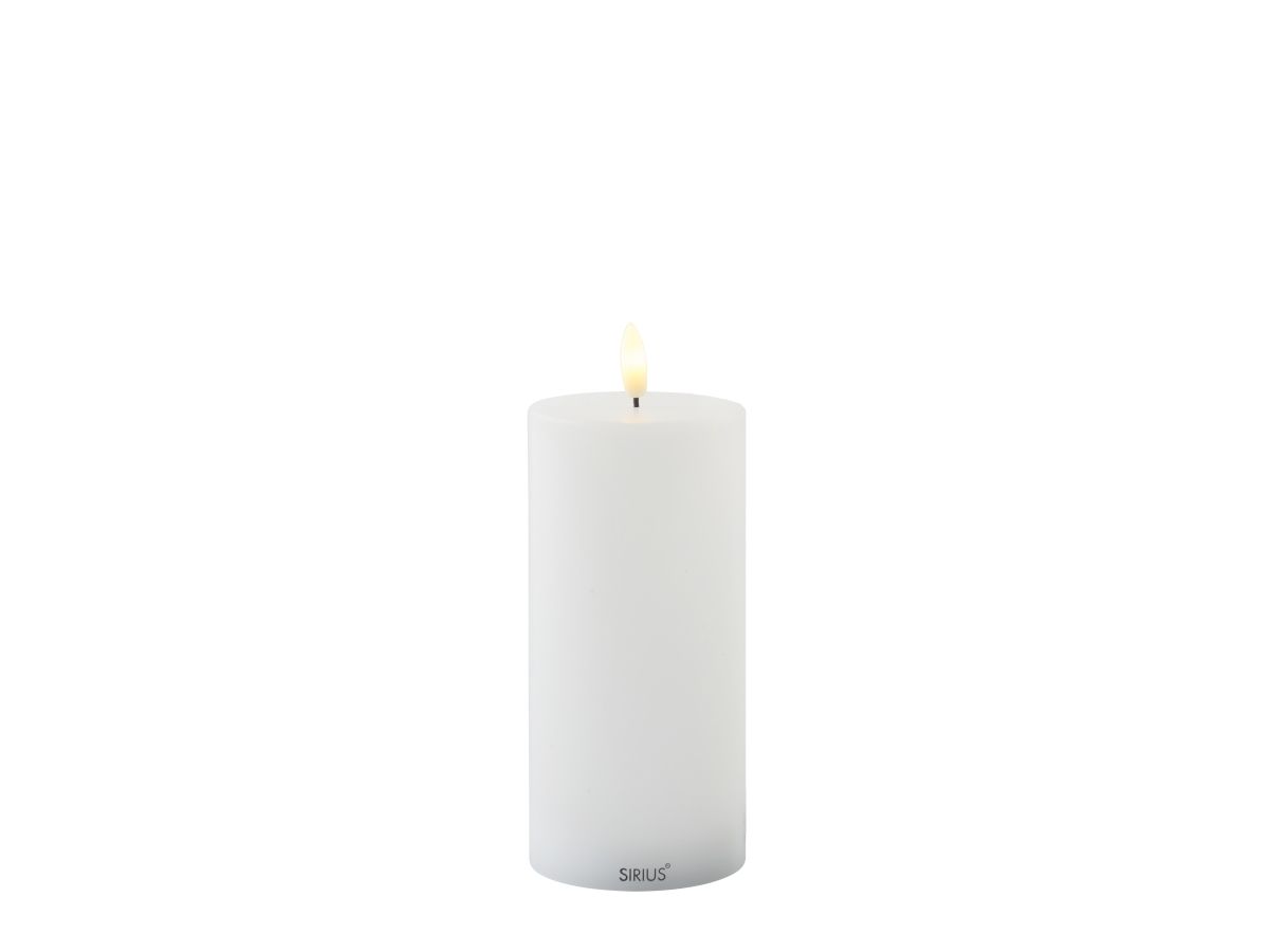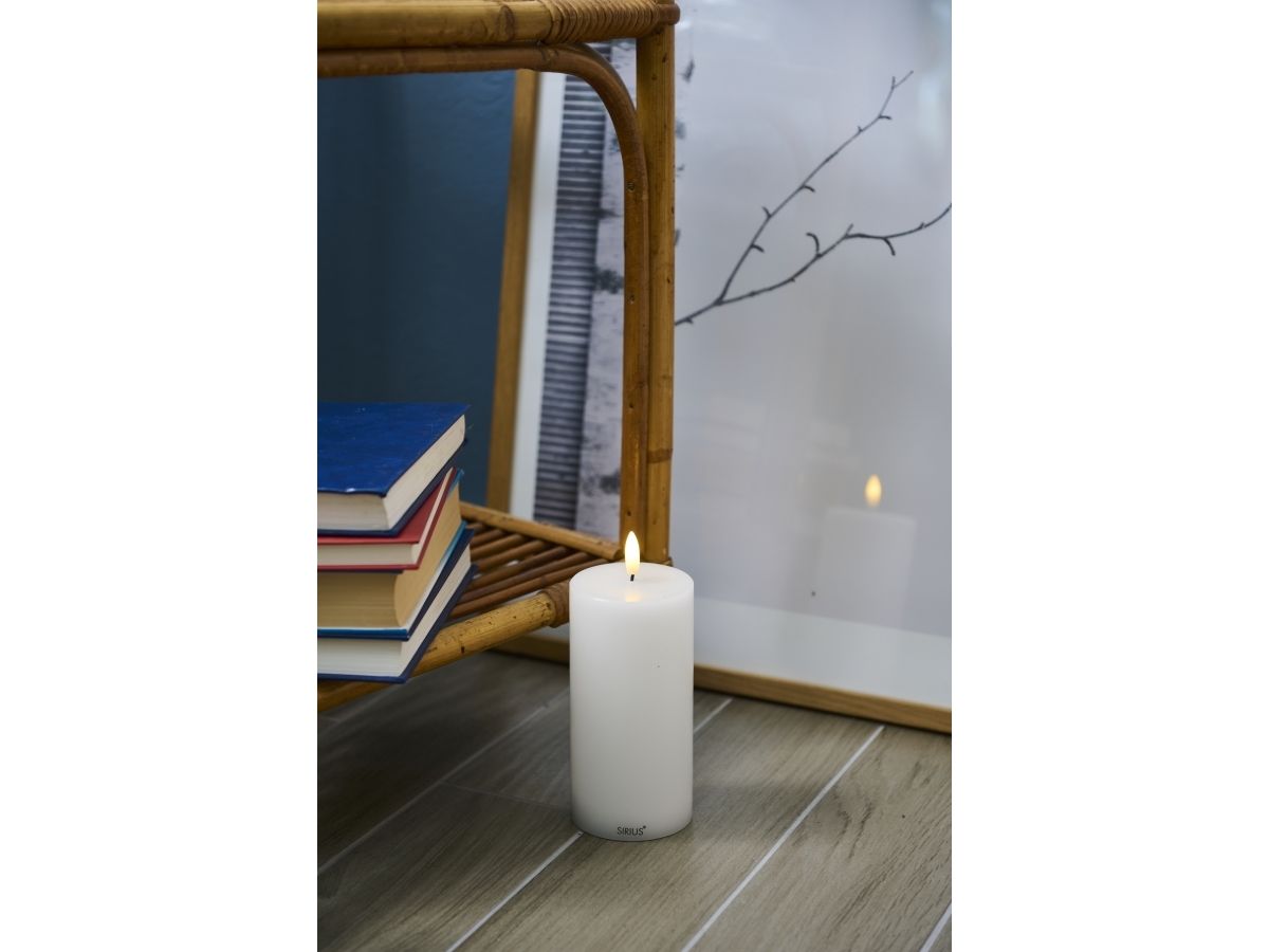 Flammen er placeret på en naturlig sort væge, ligesom man ser det på nedbrydelige stearinlys.Stearinlyset er lavet af rigtig stearin og tåler maks. 30 grader, pas på med direkte sollys. Kun til indendørs brug. Sirius stearinlyset er pakket i en flot gaveæske.