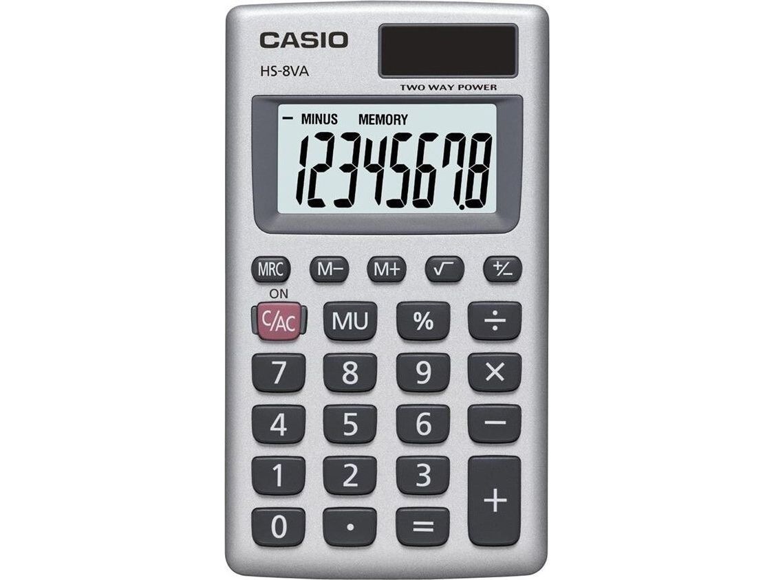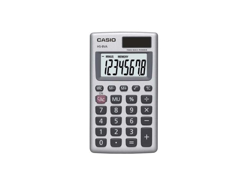Casio HS-8VA, Lomme, Grunnleggende, 8 sifre, Grå, Hvit