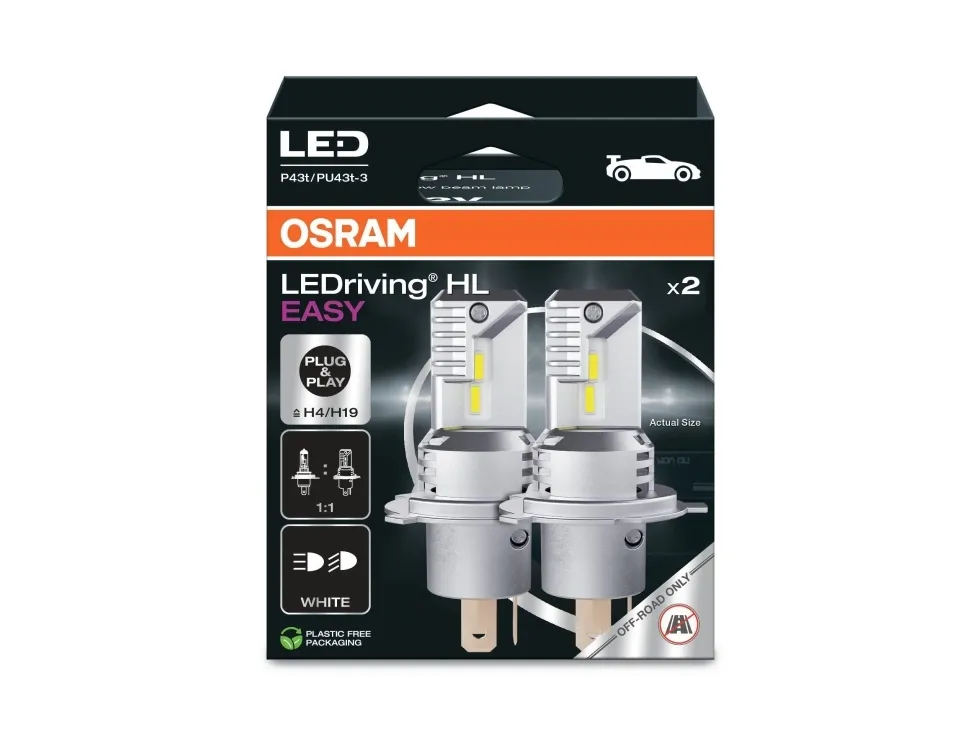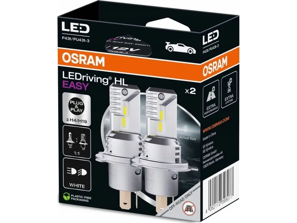 Brand- Osram. Model- LEDriving HL EASY H4/H19. Article- 64193DWESY-2HB. Lamp type- LED. Voltage- 12 V. Colour- White. Socket- PX26d. Lamp power- 16.5 W. Colour temperature- 6500 - 6500°K. Number of Items- 2.