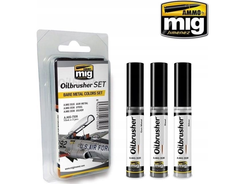 Vallejo Ammo: Oilbrusher-sett - Bare Metal Colors Set