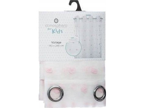 Atmosphera Vindusgardin for et barnerom med rosa pompongtrykk, 140 x 240 cm