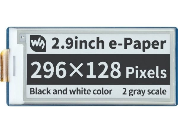 E-paper E-Ink, 2.9" 296x128px, SPI, juodas ir baltas, skirtas Raspberry Pi Pico, Waveshare 19408