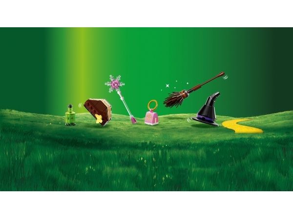 Settet har mange gjenkjennelige detaljer fra filmen, som barn kan bruke til kreativ historiefortelling, inkludert et vindu med utsikt til landet Oz, Elphabas sopelime, Glindas veske og krone samt en sokkel som rollelek-figurene kan plasseres på og stilles ut. Settet finnes i LEGO Builder appen, hvor barn kan zoome og rotere modellene i 3D, lagre sett og spore framdriften sin.
