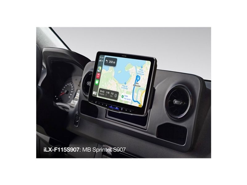 Alpine Halo11 med 11" skærm til Mercedes Sprinter 907 Alpine Halo 11 iLX-F115S907 giver dig en 11-tommers WXGA højopløselig berøringsskærm, som kan monteres i Mercedes Sprinter 907. Denne model er MAX version af den kendte Alpine Halo 9, med en meget større skærm end set før. iLX-F115S907 leveres med alle de nødvendige installationsdele. Du får trådløs Apple CarPlay og kablet Android Auto-kompatibilitet, DAB + digital radio, USB videoafspilning, Bluetooth håndfri, lydstreaming og meget mere med dette fantastiske produkt. Samt High-end lydkvalitet, med den nye class-D forstærker. Desuden indbygget WIFI modul.