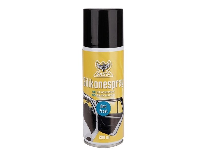 Basta silikonespray Silikone er fri for terpentin, farveløs og lugtfri. Smører og holder fugt og krybestrøm borte. Forhindrer fastfrysning og udtørring af gummilister. Bruges på bildør og bagerum. I hjemmet bruges den som imprægnering af fodtøj ect. Spray også døre og vinduer i hjemmet for optimal vedligeholdelse. Aerosol: 200 ml.