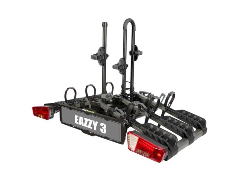 BuzzRack EAZZY3 cykelholder til 3 cykler BuzzRack EAZZY3 cykelholder har plads til 3 cykler, og er beregnet til biler med anhængertræk. EAZZY3 er en god og veldesignet cykelholder til 3 cykler, som både er smart, sofistikeret og giver meget værdi for pengene. Den er fuldt sammenfoldelig og tilbyder både praktisk montering, brugervenlige funktioner og kompakt opbevaring. BUZZRACK cykelholdere er godkendt af TUV. XP-NORM R18-904-4.