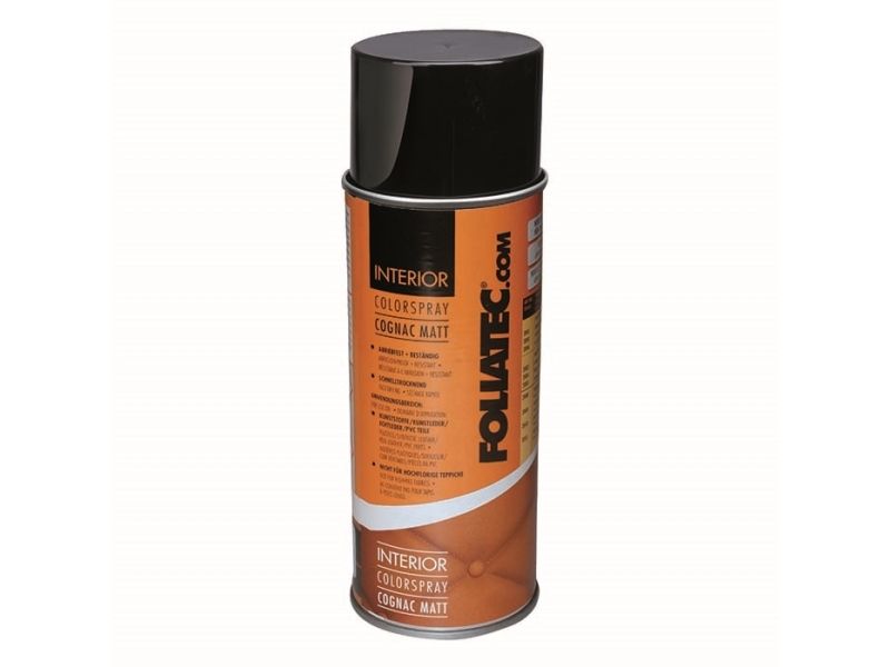 Foliatec Interiør Colour spray cognac Interior Color Spray er et innovativt og komplet belægningssystem af høj kvalitet. Sprayen er velegnet til plast, tekstil/stof, kunstlæder, ægte læder og PVC-dele. På grund af den unikke kemiske sammensætning trænger farven direkte ind i materialet. Dette giver mulighed for en virkelig holdbar, elastisk materialeforbindelse. Og den oprindelige overfladestruktur forbliver uændret. slidstærk og elastisk hurtigtørrende