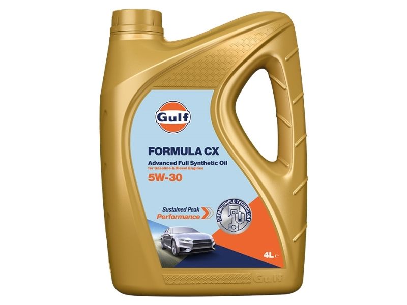 Gulf Formula CX 5W-30 motorolie - 4 literMotorolien Gulf Formula CX 5W-30 er en overlegen "ydeevnekatalysator", som er lavet af den fineste kvalitet syntetisk og state-of-the-art additivteknologi, som ligger inden for mellem-SAPS kravene (Sulfateret Aske, Fosfor og Sulfur).Olien er specielt udviklet til alle moderne turboladede benzin- og dieselmotorer med høj effekt i personbiler, SUV'er, lette varevogne og lastbiler, der kræver ACEA C2/C3 kvalitetsolier.Gulf-olien giver motoren enestående rengøringsevne og slidbeskyttelse og minimerer aflejringer i motor og turbolader, der fører til overlegen motorydeevne. Motorolien opfylder kravene til de nyeste lavemissions oliespecifikationer fra førende bilproducenter som Daimler, VW, GM, BMW og PSA.