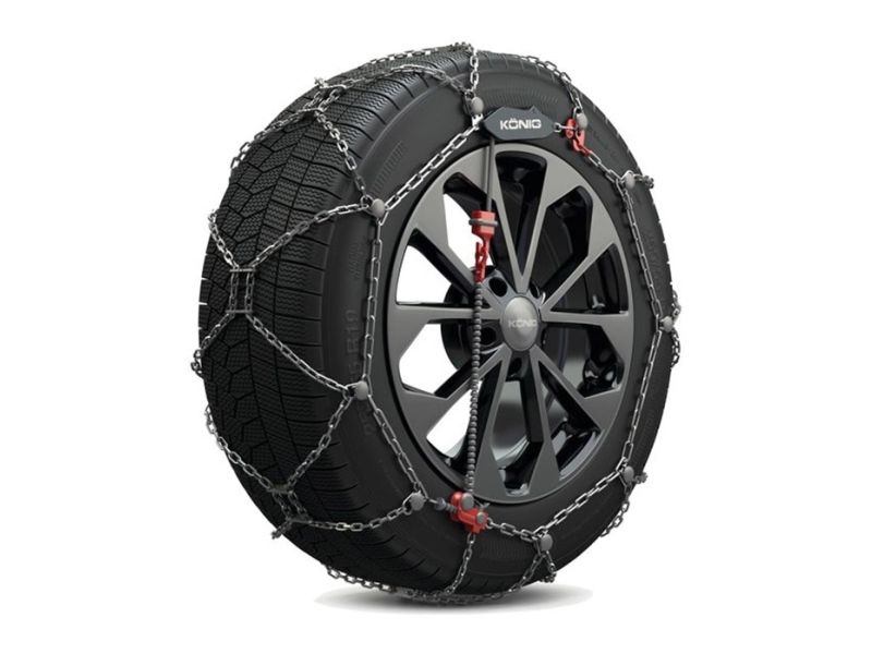 Snekæden er selvspændende, med kun et stop er kæden nem at samle. Mikroreguleringssystemet sikrer perfekt spænding af kæden. Når først snekæden er monteret på hjulet, kræver den ikke noget ekstra stop for efterspænding. König XG-12 har et specielt kædemønster med dobbelt svejsede trækkraftplader.