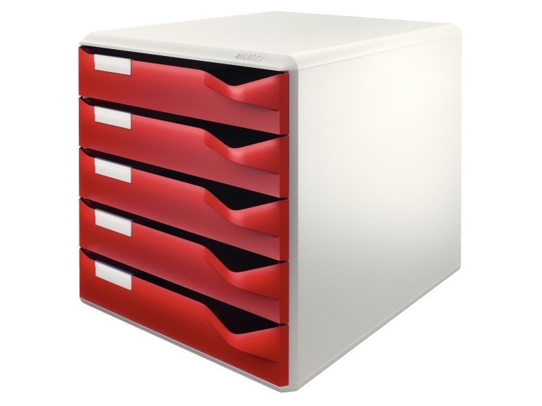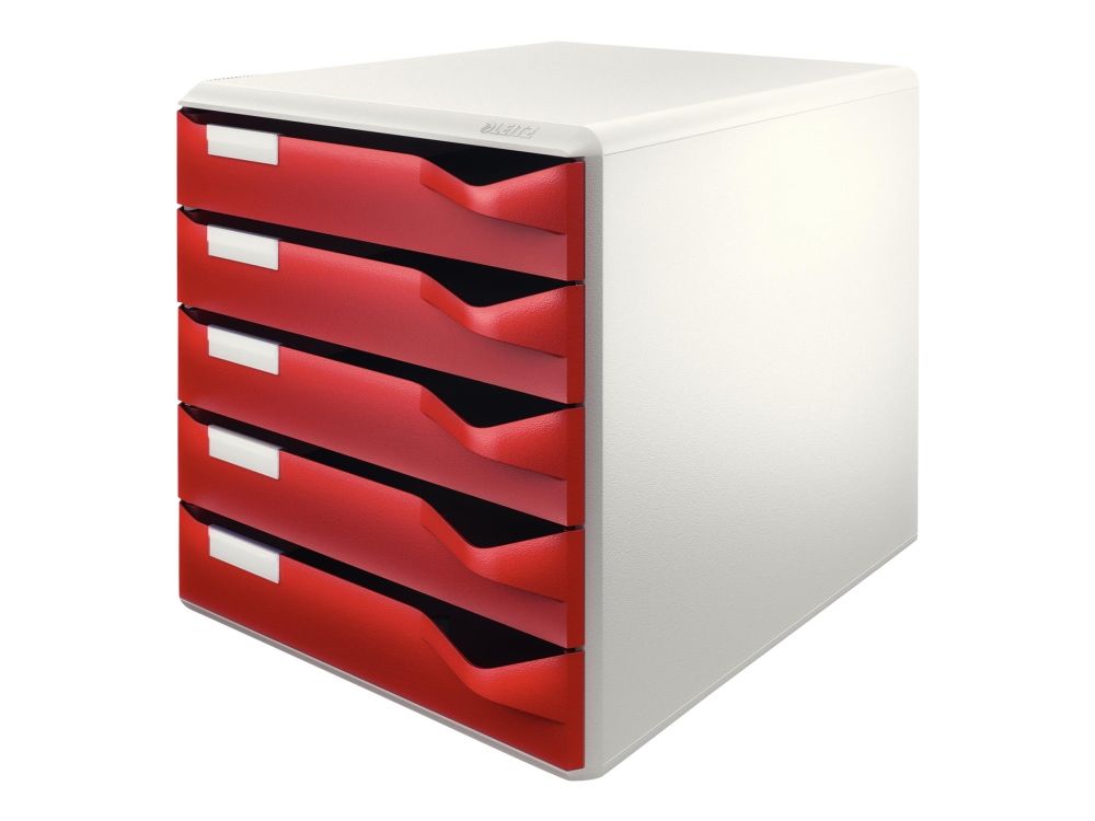 Leitz - skuffskap - for A4 - lysegrått med bordeaux-skuffer