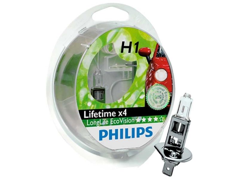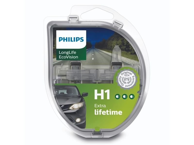 Philips LongLife EcoVision 12258LLECOS2 Lengre levetid, 55 W, 12 V, H1, 3100 K, 2 stykker