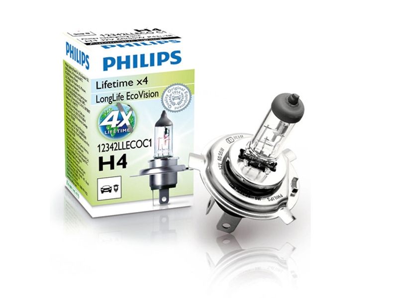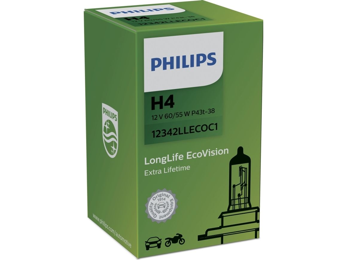 Philips LongLife EcoVision 12342LLECOC1 Lengre levetid, 60 W, 12 V, H4, 3100 K, 1 stykker