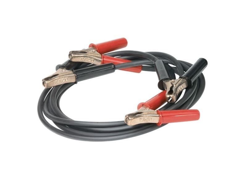 RACO starthjælpekabler leveres med fleksibelt gummikabel og kraftige støbte tænger.