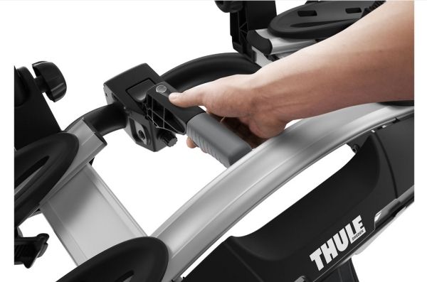 THULE Velocompact cykelholder til 2 cykler Passer til cykler med enhver akselafstand takket være hjulholderne, der hurtigt og enkelt kan udvides. Den ergonomiske kobling sikrer nem montering på anhængertrækket med blot én hånd og hjulremmene med pumpespænder gør det nemt og hurtigt at fastgøre cyklerne (også velegnet til elcykel). Den smarte fodpedalbetjente vippefunktion gør det nemt at komme i bagagerummet. Cykelholderen er hurtig at klappe sammen og opbevare.