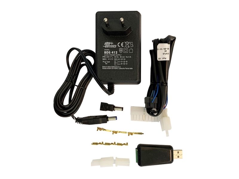 Datalinker kabel til alarm unit USB nøgle til datalinker kabel 230V Strømforsyning Stik til stømforsyning til forbindelse med Datalinker kabel.