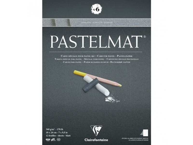 Clairefontaine PASTELMAT paper nr.6 - 18x24 - 12 ark Antracit grå