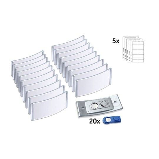 Sættet indeholder 20 skilte med patenteret smag® magnet for nem og sikker vedhæftning på tøjet.